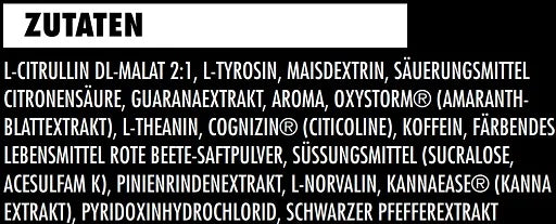 Nowadays, citrulline is a must in any booster. The amino acid has a key function in our organism and serves as a precursor to arginine, which in turn can be converted into nitric oxide (NO). NO, in turn, has the task of promoting the vasodilation of blood vessels, i.e. widening them. This is intended to increase blood flow and thus the pumping effect.